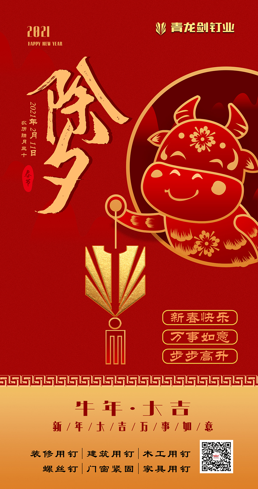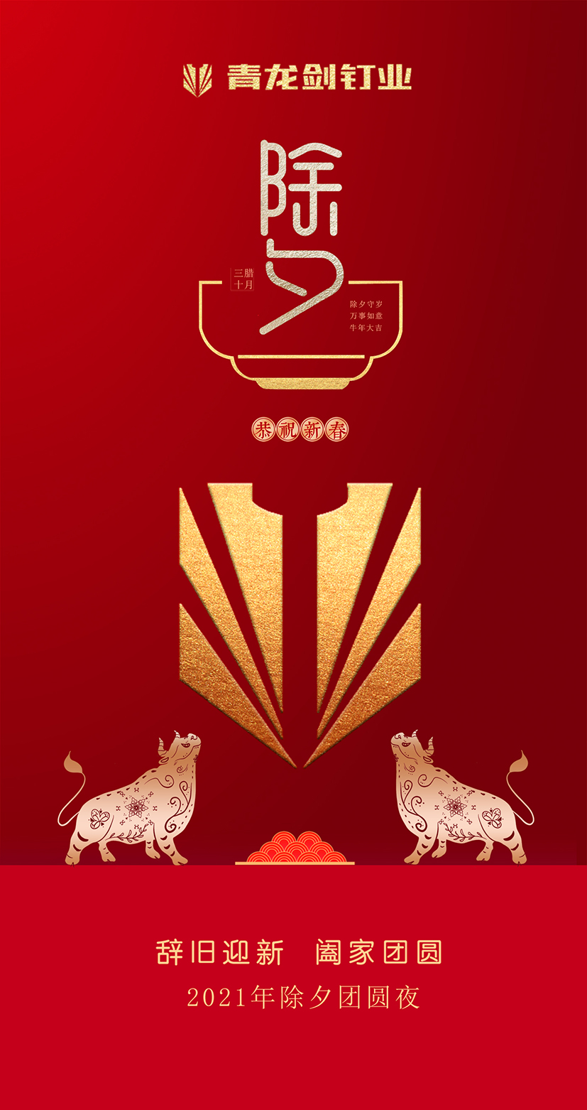 長河悠遠,天地常新。2021年新春的曙光即將開啟時間之門,在這辭舊迎新的美好時刻,我們向關心和支持青龍劍公司發展的社會各界同仁、全國的經銷商、供應商和用戶朋友們致以親切的節日問候和誠摯的新春祝福!向奮斗在一線工作崗位、勤勉敬業的青龍劍員工致敬!