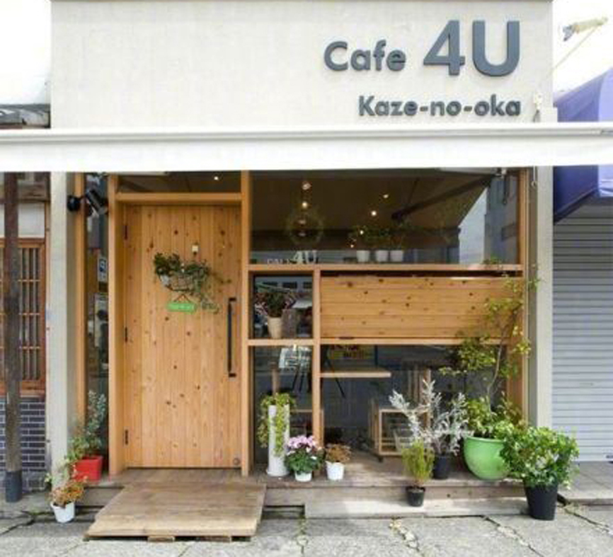 咖色門頭、簡易英文店名畫+簡易畫、原木色透明門臉,贊!