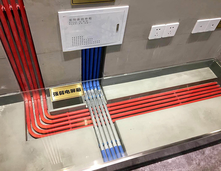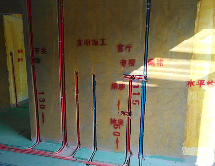 在標(biāo)準(zhǔn)裝修施工時(shí),強(qiáng)弱線路必須采用PVC管進(jìn)行套管保護(hù),并通過不同顏色的PVC管進(jìn)行區(qū)分,通常紅色PVC管為強(qiáng)電,藍(lán)色PVC管為弱電。